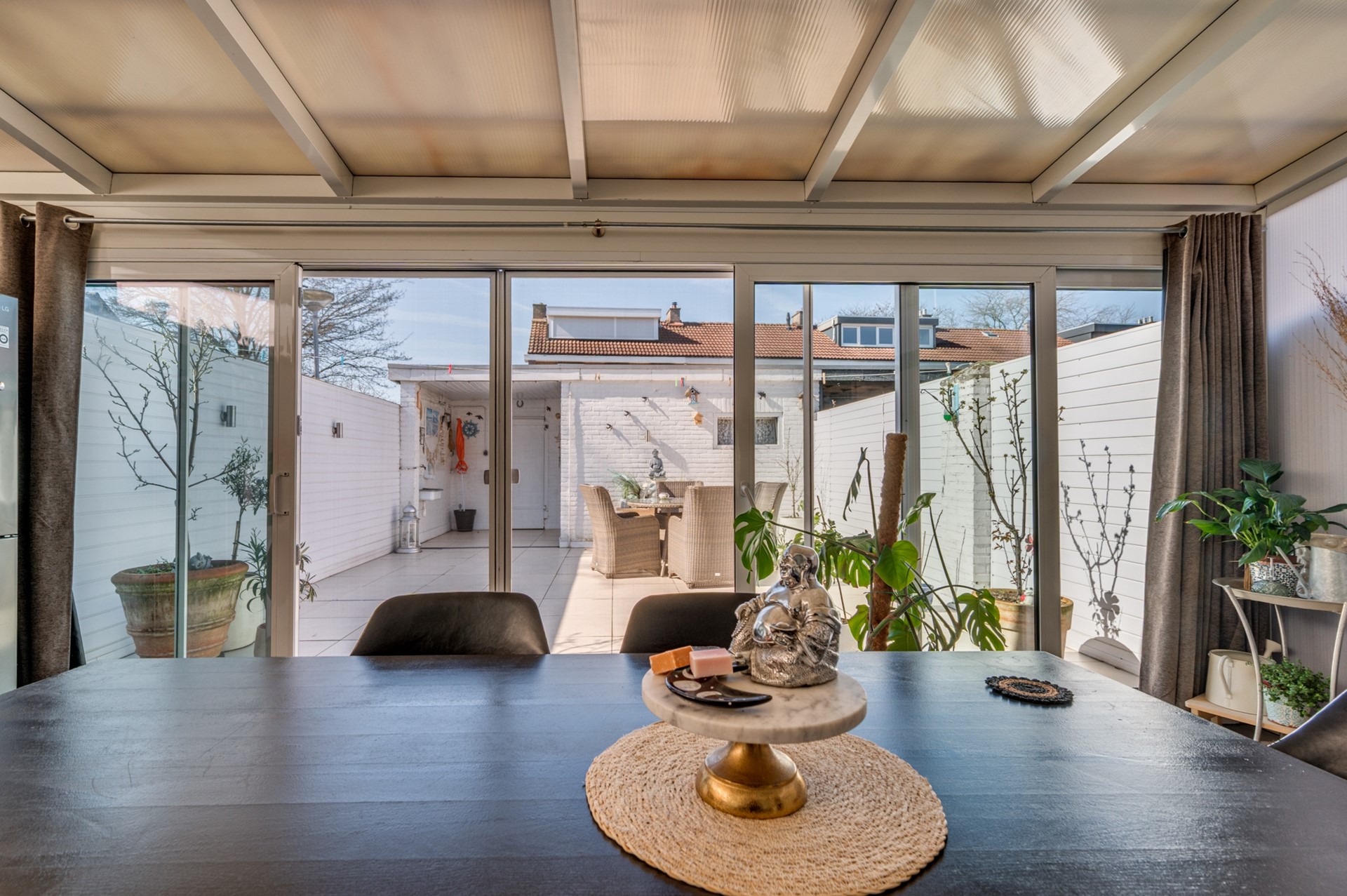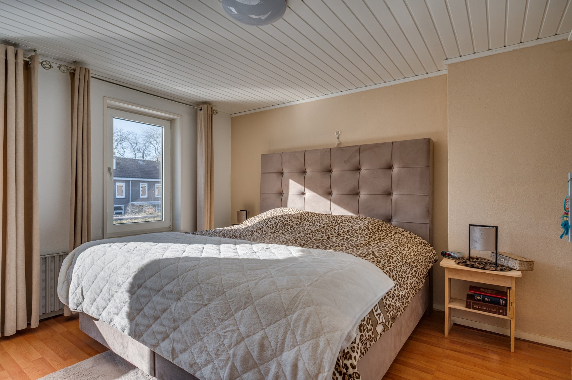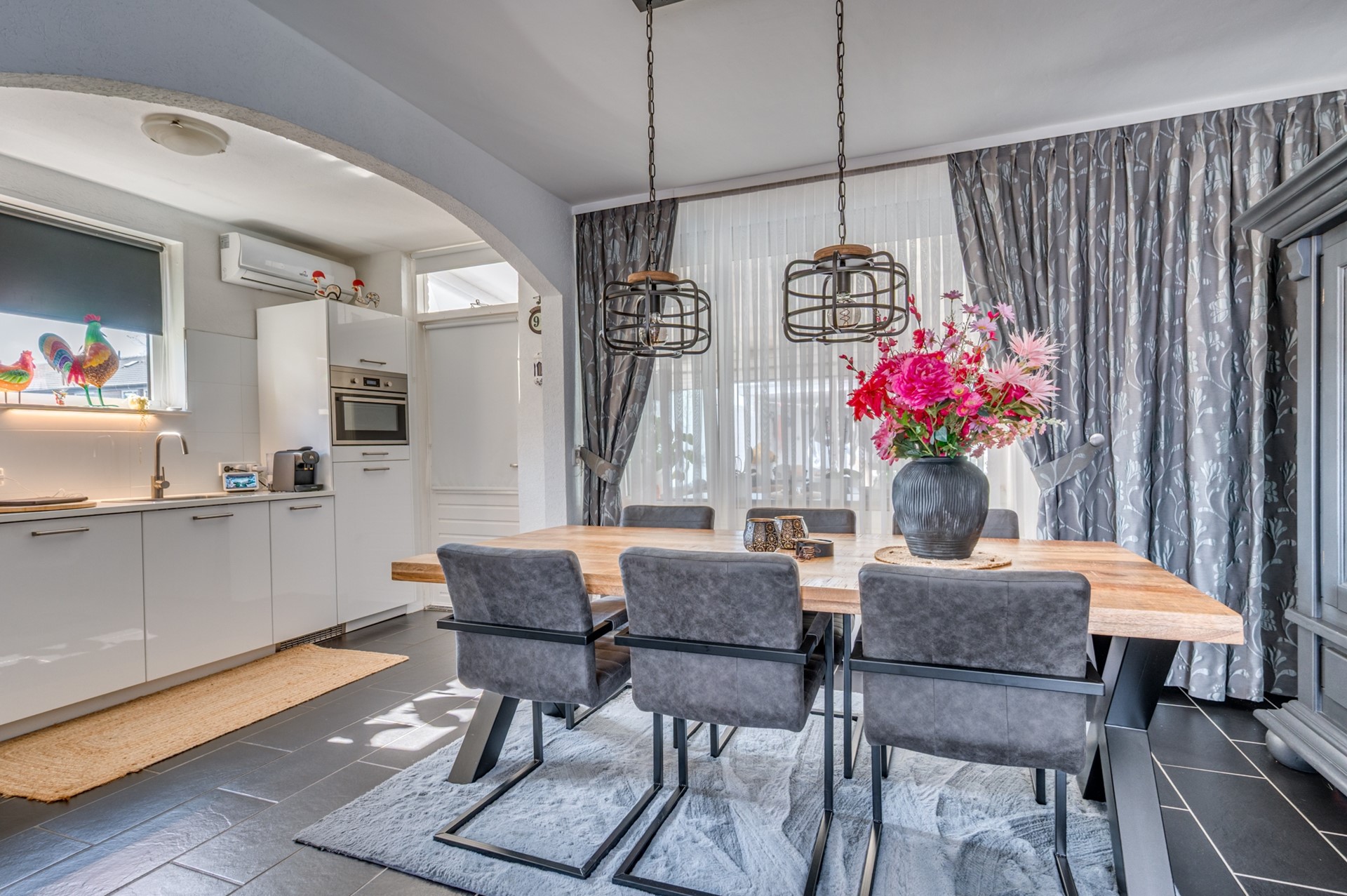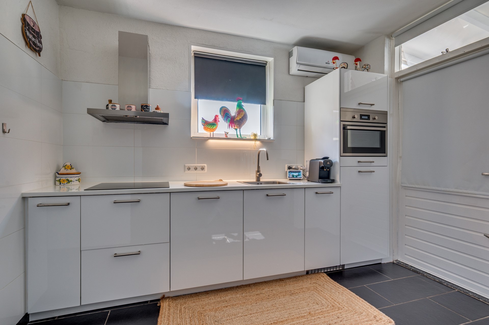 Verrassend ruime en goed onderhouden hoekwoning met een fraai aangelegde, volledig betegelde achtertuin en vrije achterom. De woning beschikt over een lichte woonkamer met tegelvloer, airconditioning en een sfeervolle houtkachel. De open keuken is modern uitgevoerd en voorzien van diverse inbouwapparatuur, waaronder een koelkast, vaatwasser, combi-magnetron, inductiekookplaat en afzuigkap. Proviandkelder aanwezig.