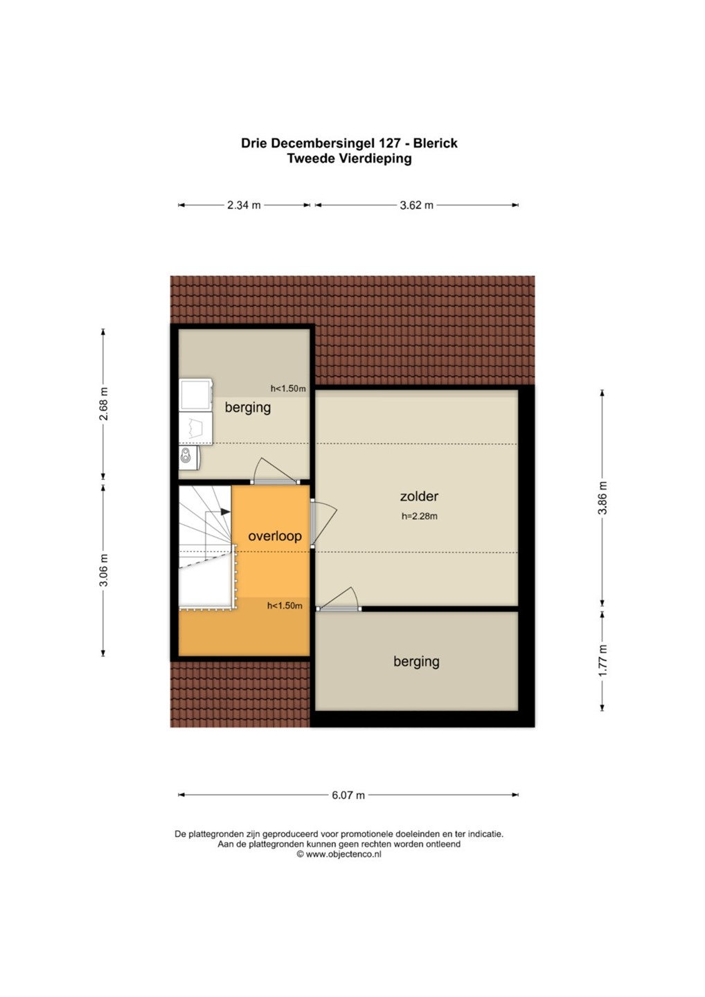 - Via vaste trap naar 2e verdieping. - Overloop. -Was-/cv ruimte. - Hobbykamer met bergruimte.