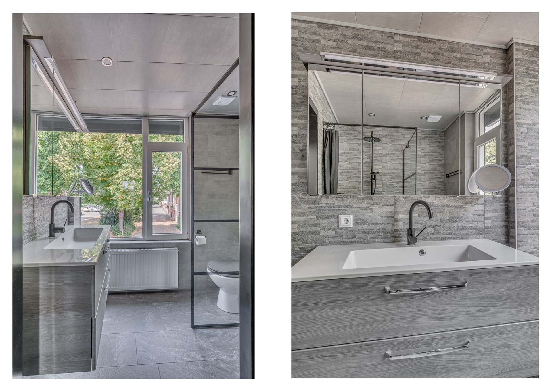 - Overloop. - Slaapkamer 1 - Slaapkamer 2 - Slaapkamer 3 - Zeer fraai afgewerkte badkamer met inloopdouche, toilet en wastafelmeubel; mechanische afzuiging.