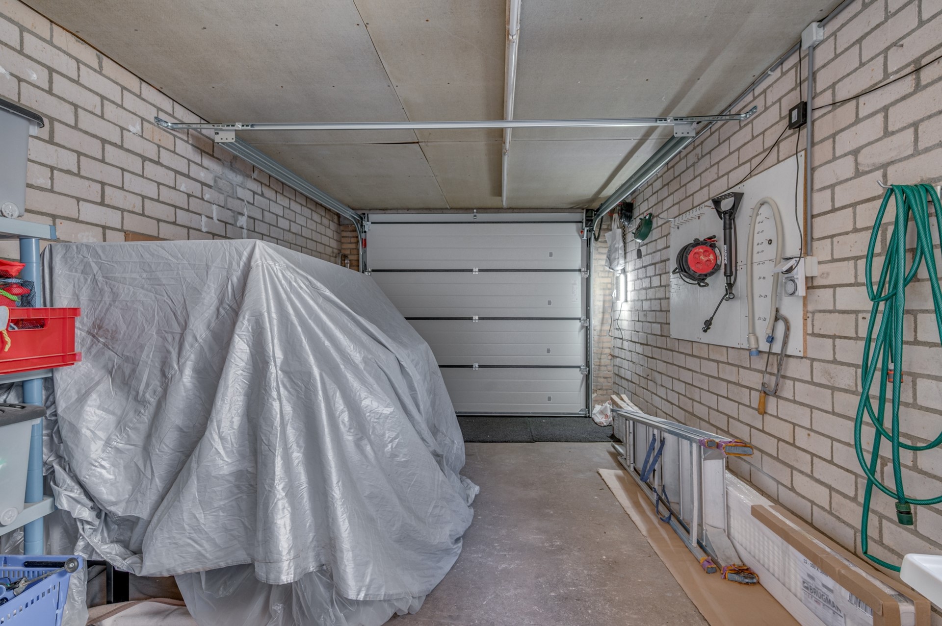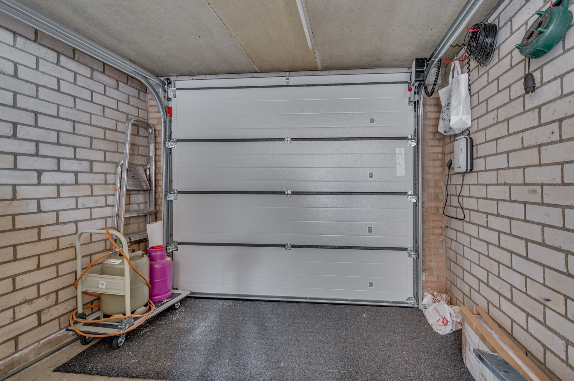 De garage is volledig geïsoleerd (spouw) en voorzien van een elektrisch bedienbare sectionaalpoort.