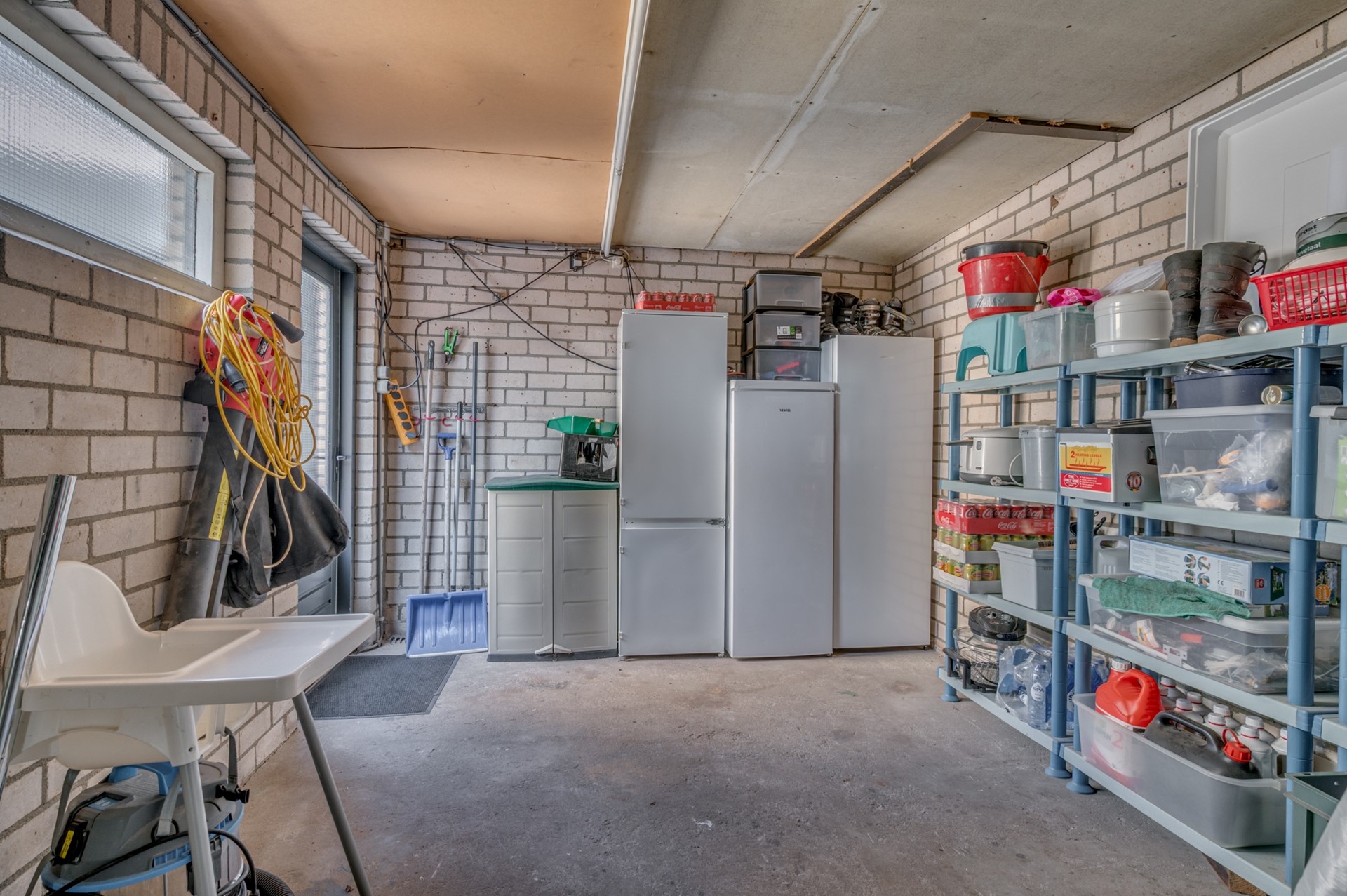Via een vaste trap bereik je de tweede verdieping met wasruimte, bergruimte en een royale hobby- of werkruimte.