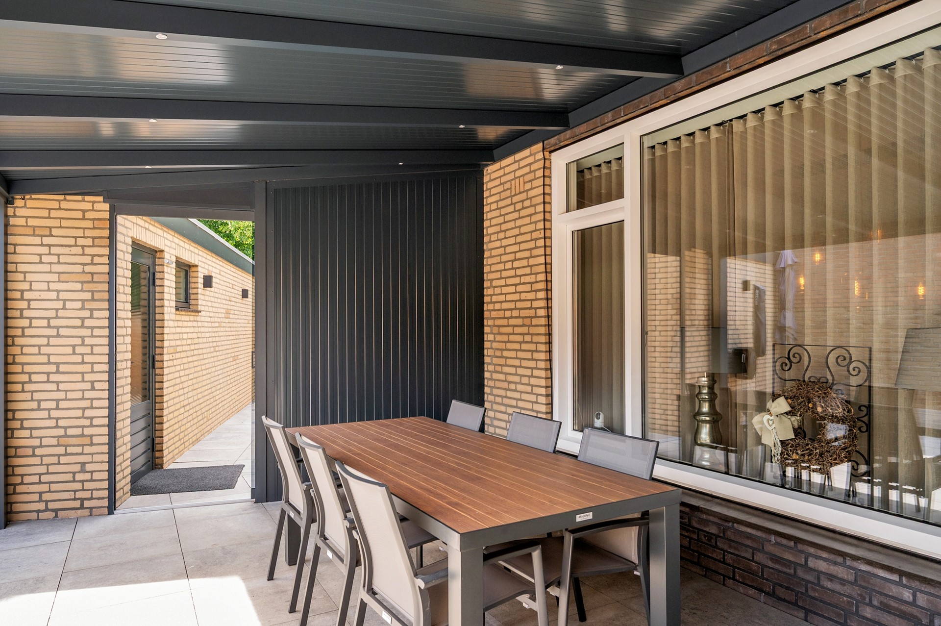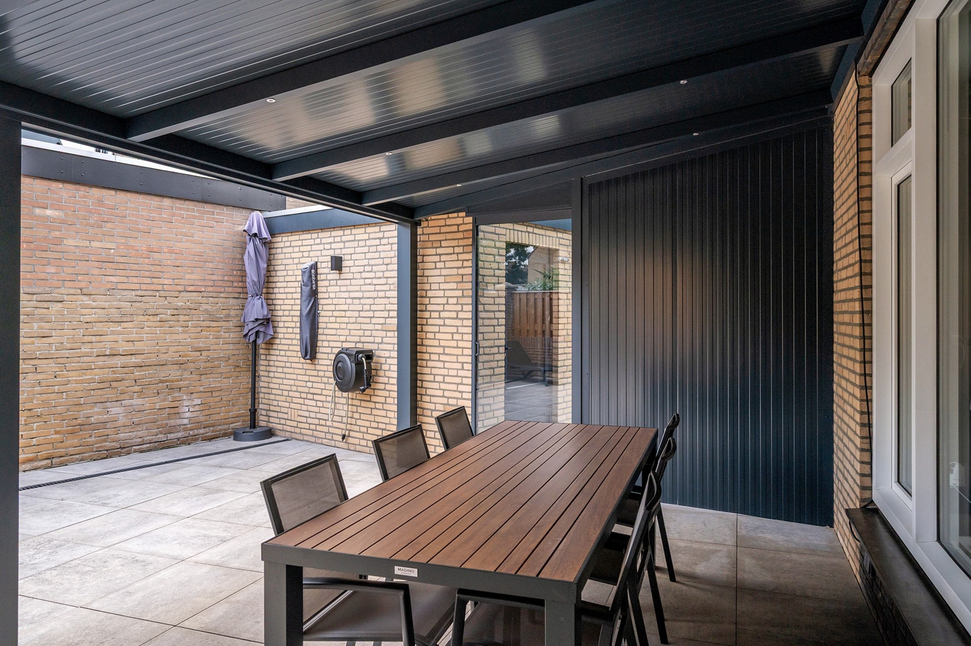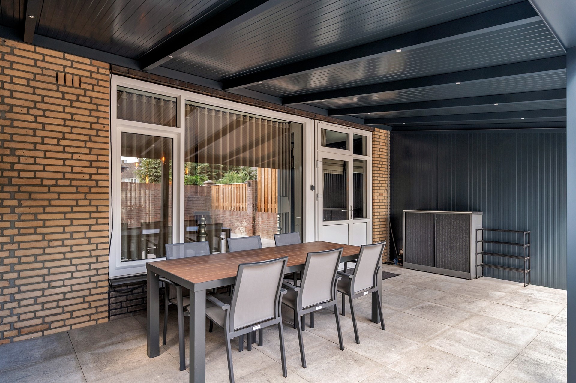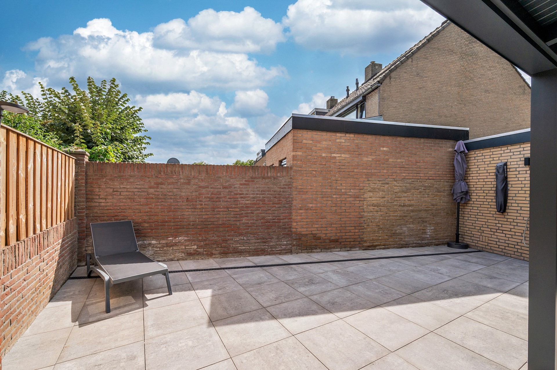 De woning heeft een onderhoudsvrije zij- en achtertuin met garage; de garage is voorzien van spouwmuren en een elektrisch bedienbare poort. De achtertuin is voorzien van een zeer fraaie overkapping met geïsoleerd dak.