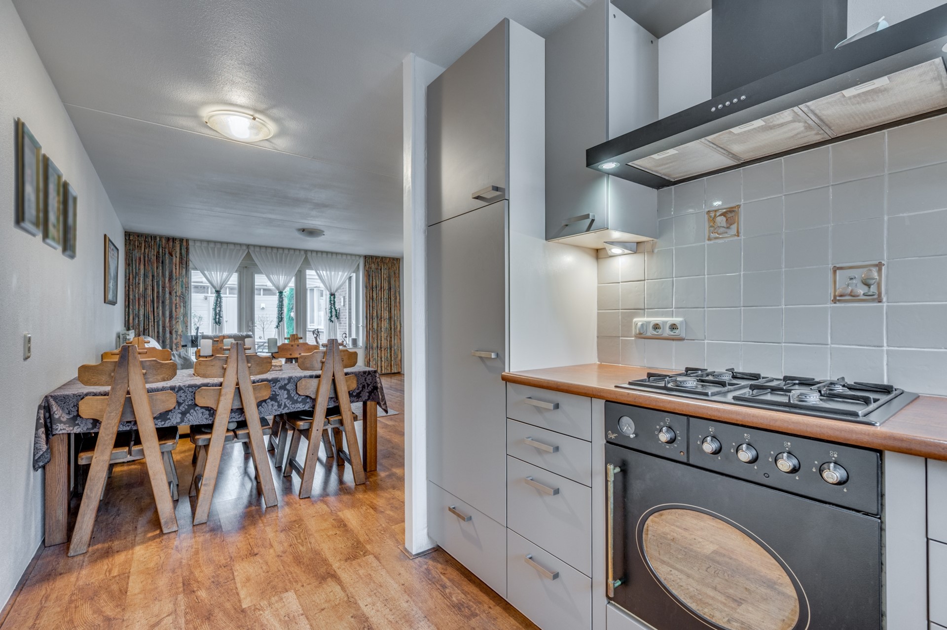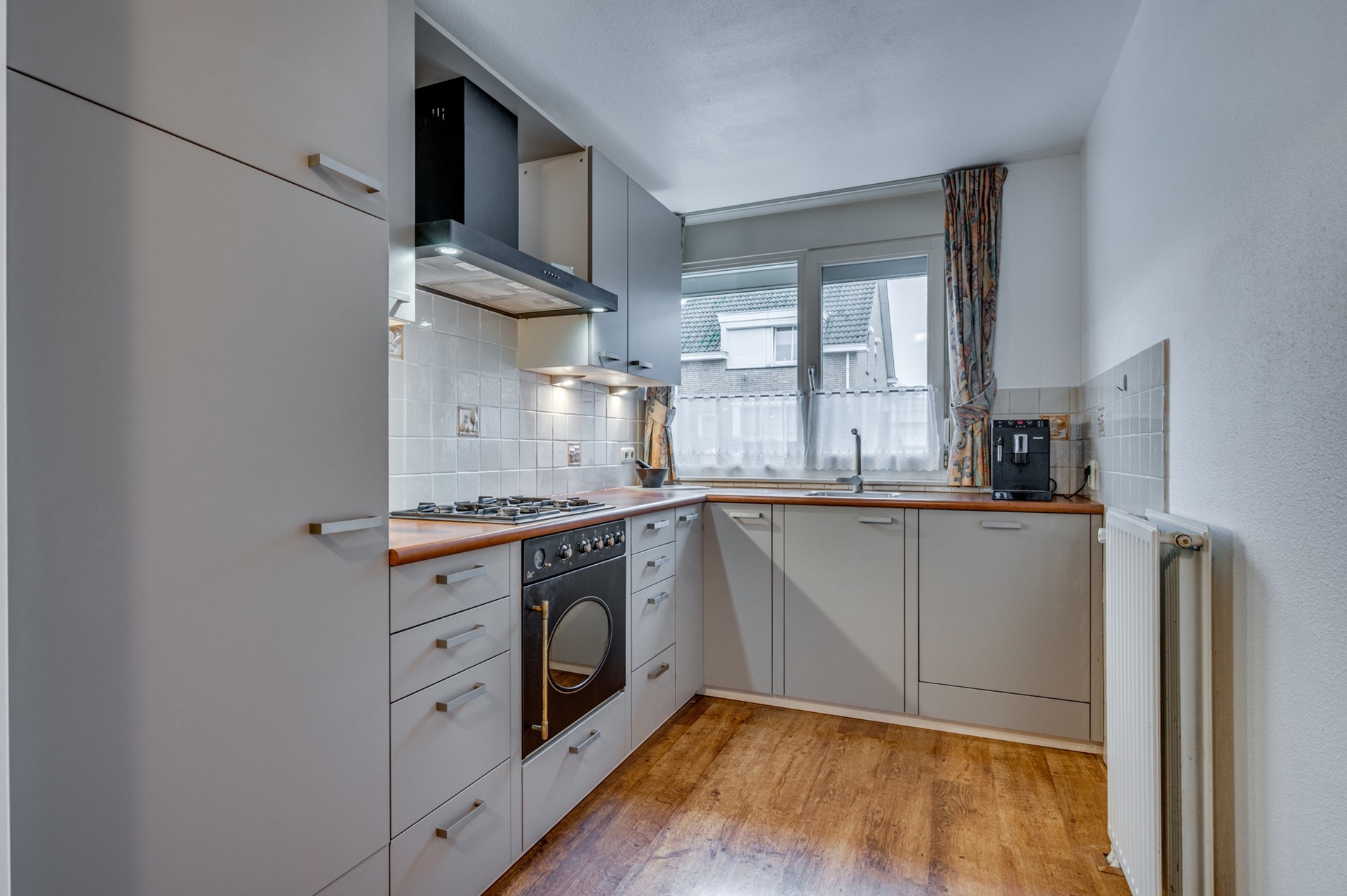 - Entree/gang met garderobe en toilet. - Keuken, aan voorzijde gesitueerd, met hoek opgestelde inrichting voorzien van gasfornuis, afzuigkap, oven, koelkast en vaatwasser, - Zonnige woonkamer met laminaatvloer, openslaande deuren naar de tuin en trapkast. - Slaapkamer met laminaatvloer. - Badkamer voorzien van douche, wastafel, 2e toilet en aansluiting voor witgoed. - Inpandige (fietsen)berging.