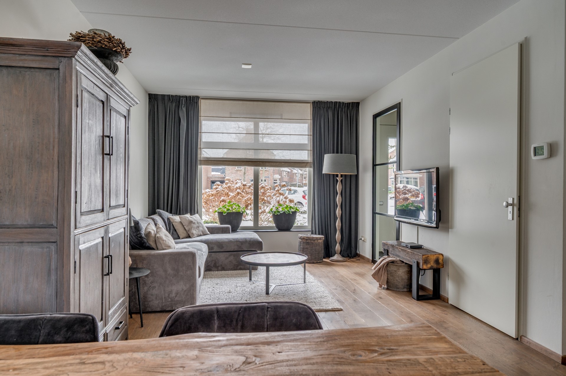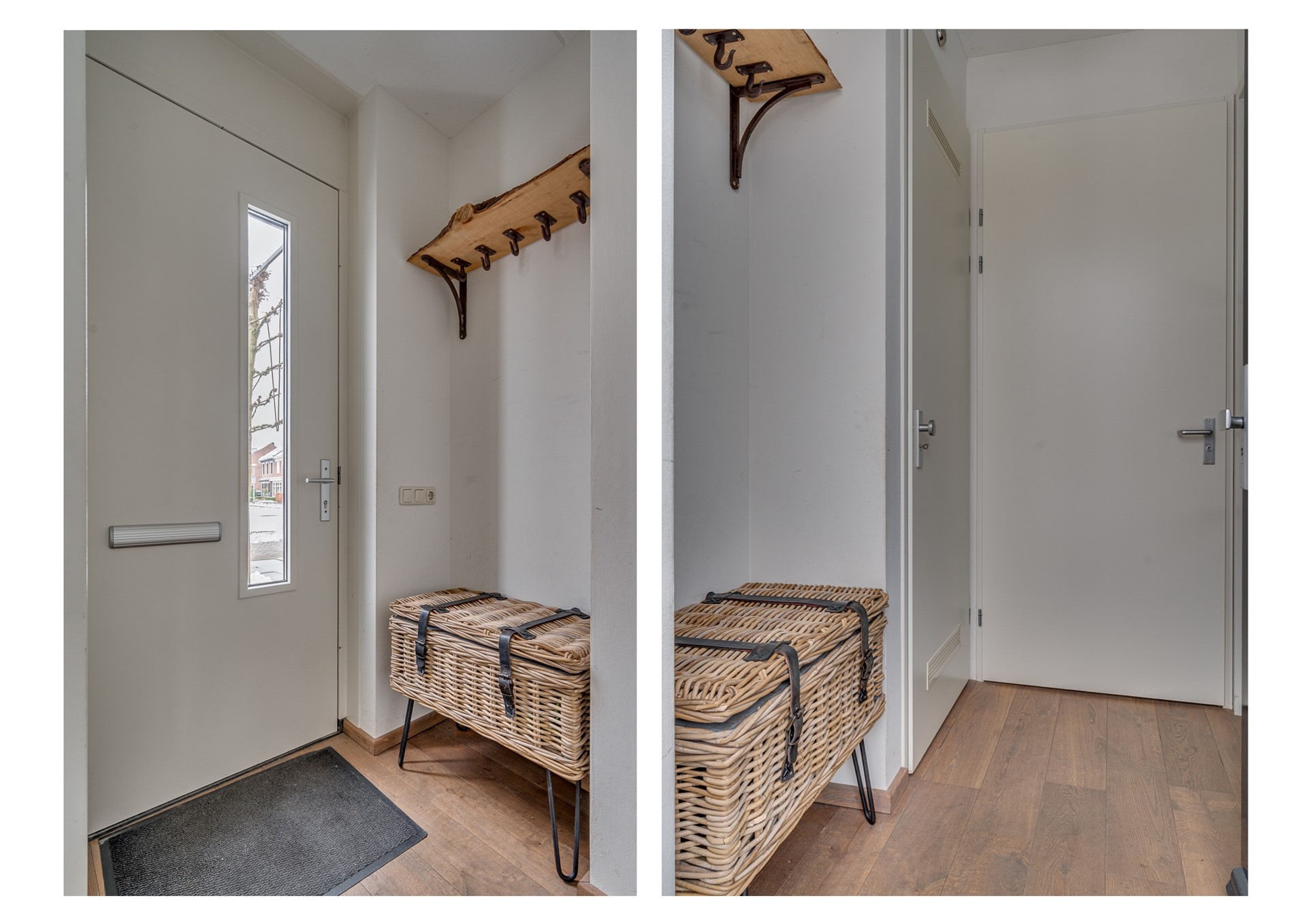 Via de entree is de hal bereikbaar met garderobe, meterkast en een modern toilet. Vanuit de hal heb je toegang tot de gezellige woonkamer met grote raampartijen en openslaande deuren maar de tuin. Aan de voorzijde is er vrij uitzicht op de groenvoorziening. In de woonkamer bevindt zich tevens een praktische trap-/bergkast. De halfopen keuken is aan de achterzijde gesitueerd en uitgevoerd in een moderne hoekopstelling. De keuken is voorzien van een gasfornuis, afzuigkap, combi-oven, koelkast en vaatwasser. De gehele begane grond is afgewerkt met een fraaie houten vloer en voorzien van vloerverwarming.