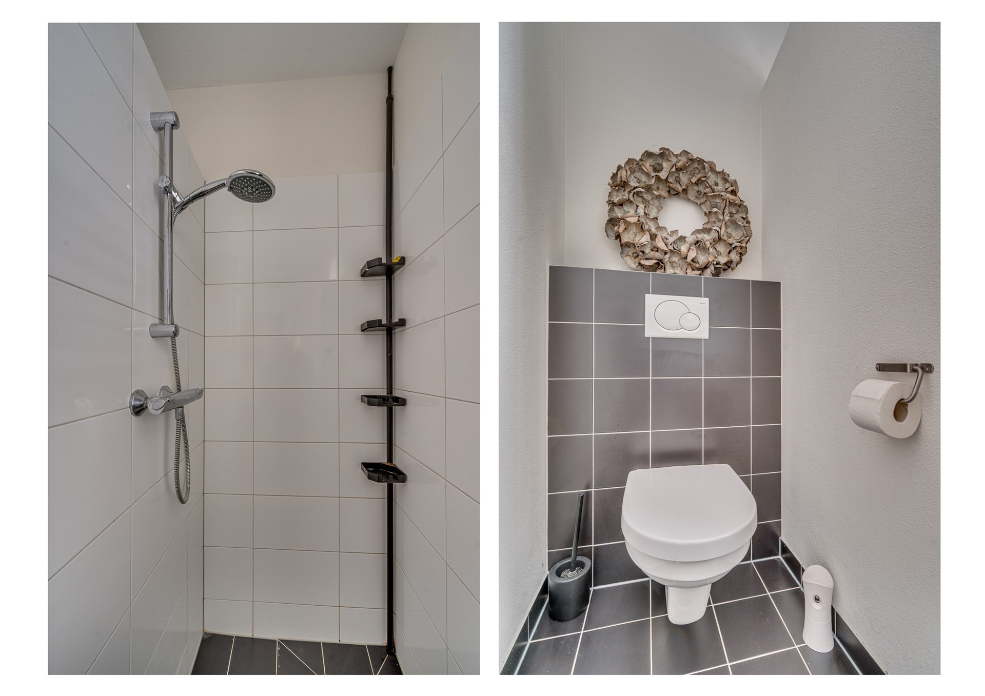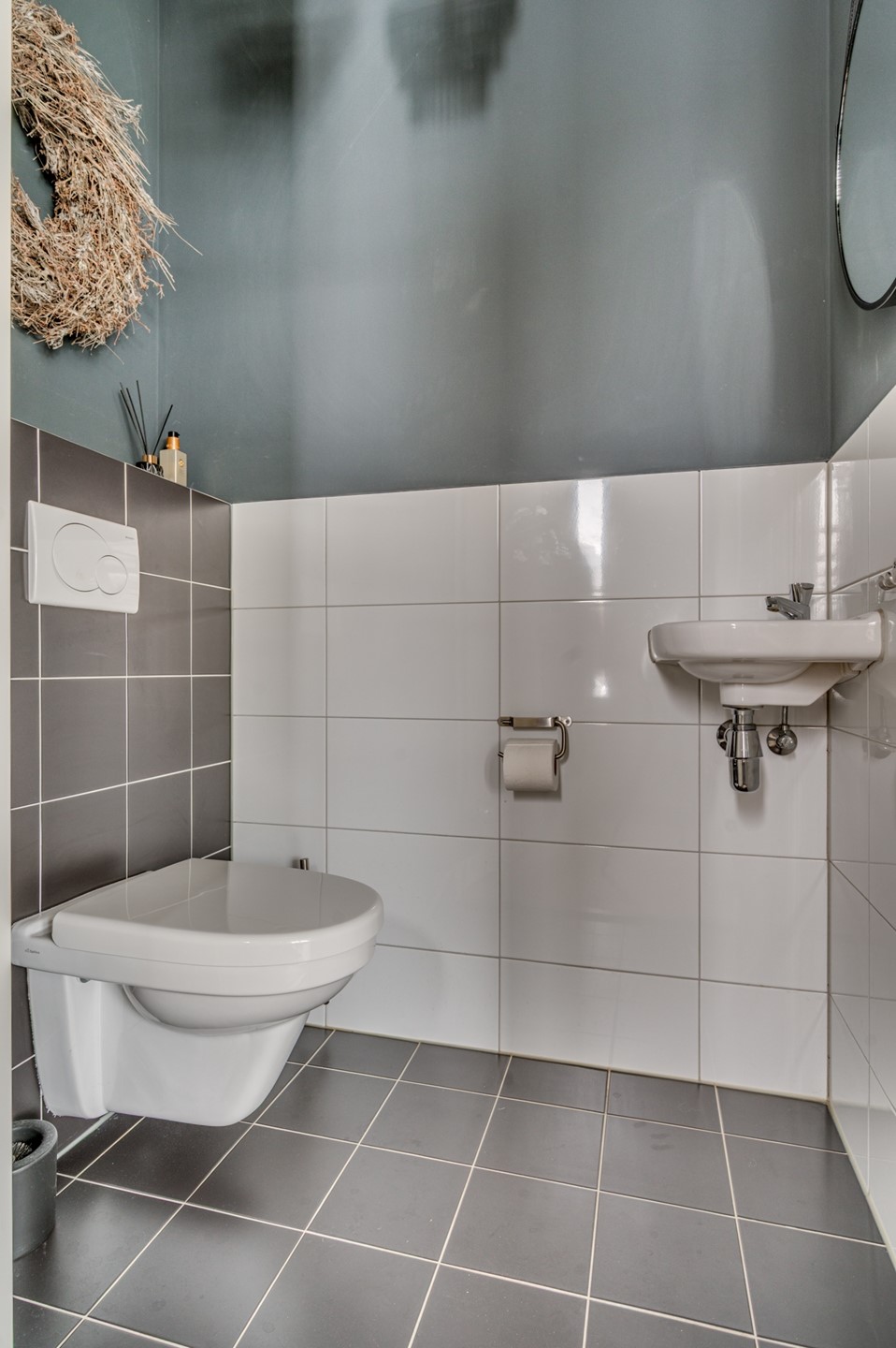 De overloop geeft toegang tot drie slaapkamers en de badkamer. Alle slaapkamers zijn voorzien van laminaatvloeren. De moderne badkamer is ingericht met een inloopdouche, wastafel en een tweede toilet.