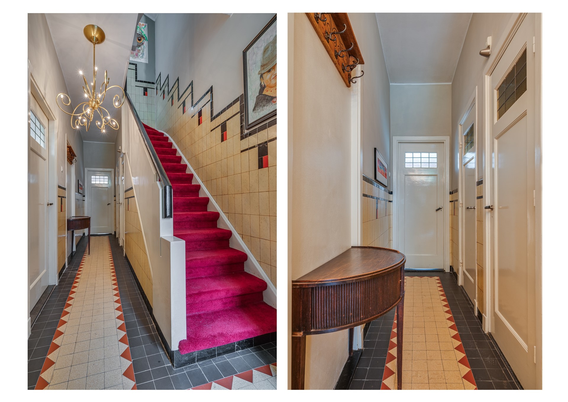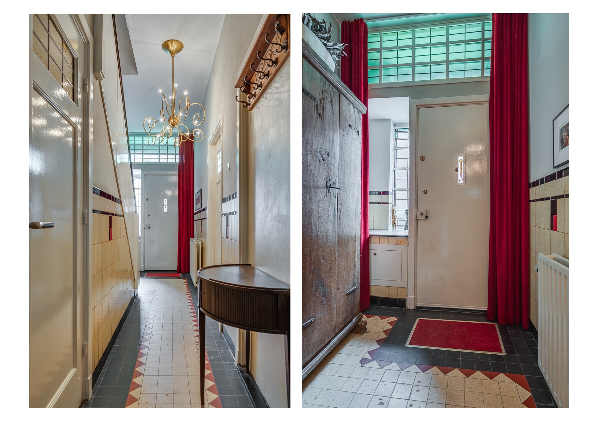 - Sfeervolle entree met originele tegelvloer en lambrisering.