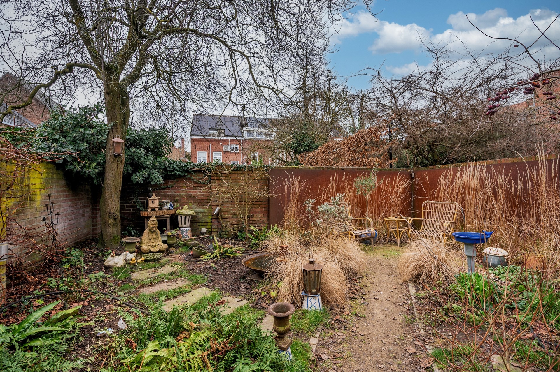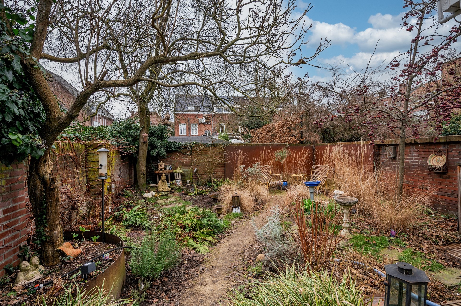 De in 2018 aangelegde tuin is een volledig ommuurde, groene stadsoase met volwassen beplanting, bomen en robuuste cortenstalen wandpanelen. Geïntegreerde verlichting en een bewateringssysteem zorgen voor comfort en sfeer. Met aparte lounge- en eetgedeeltes is dit de perfecte plek om te ontspannen ️ of gasten te ontvangen .