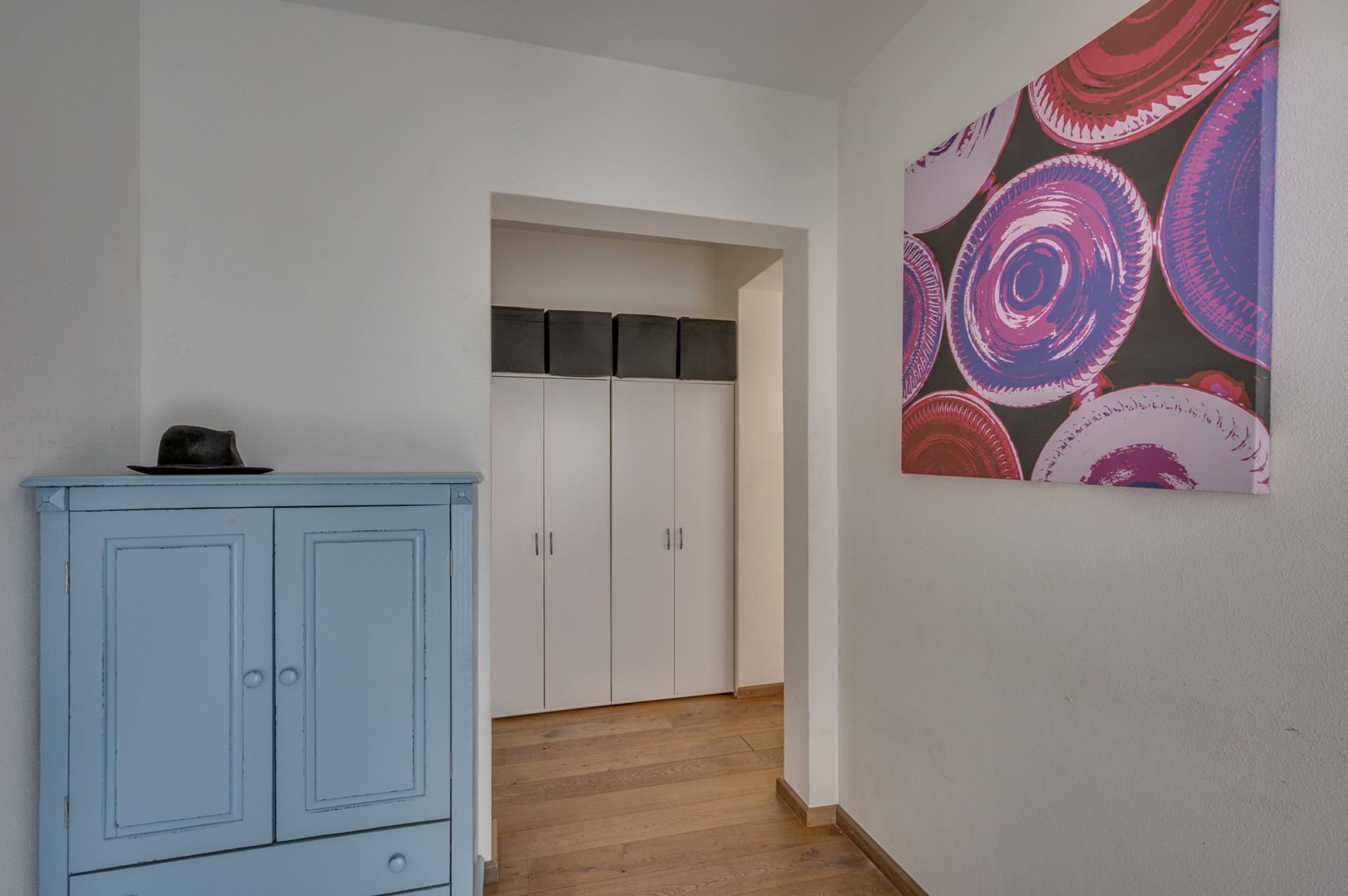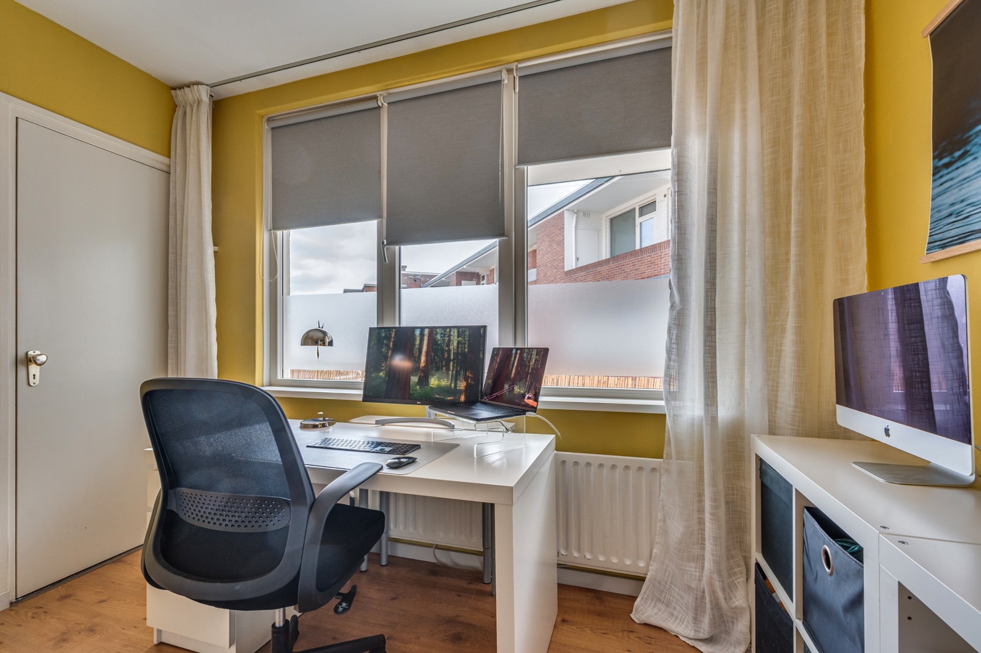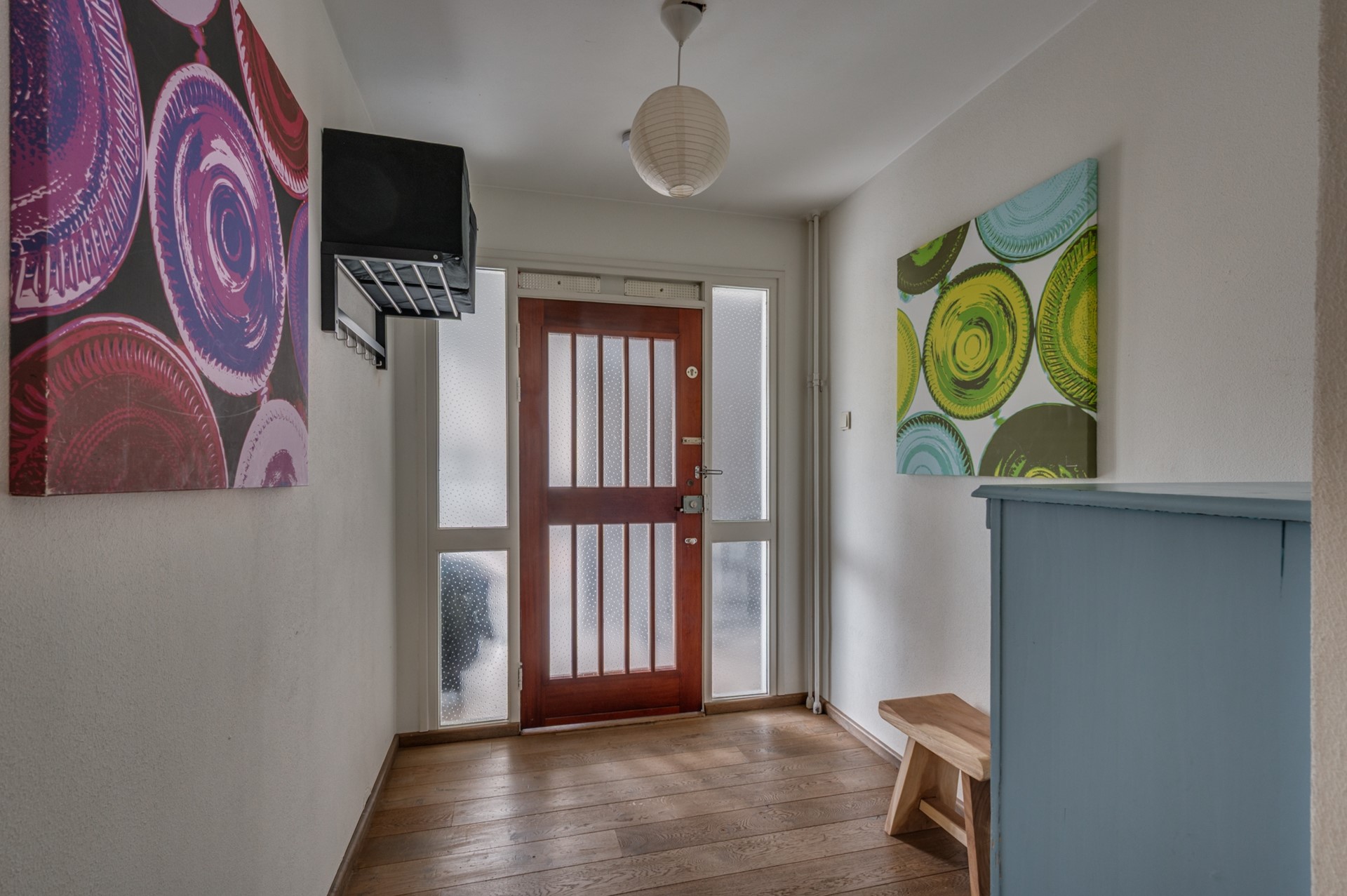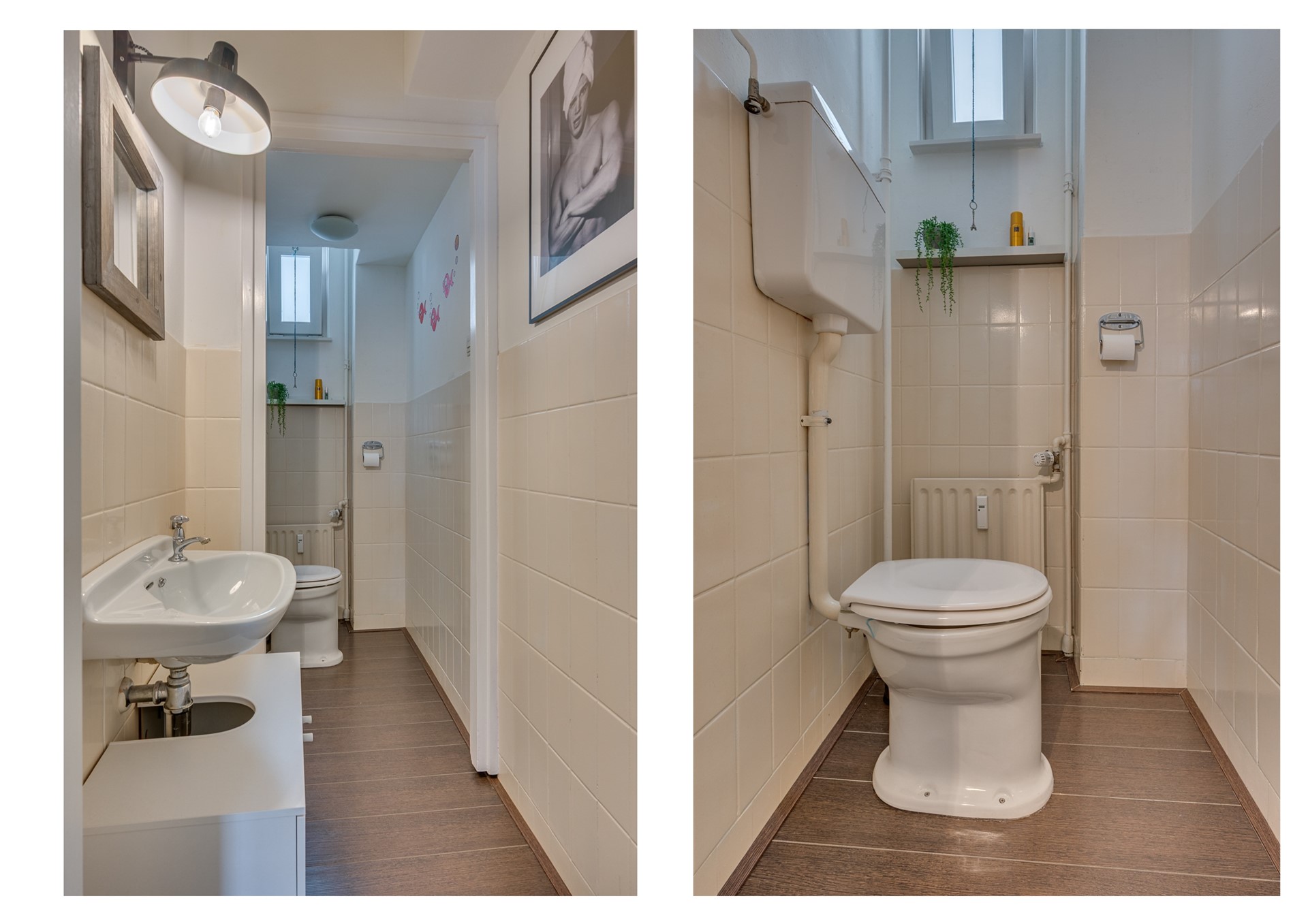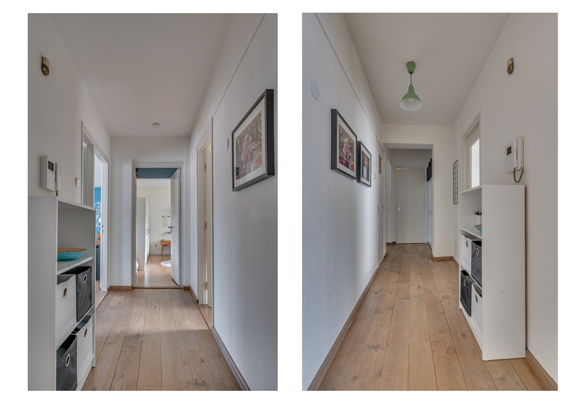 Via de sfeervolle entree bereikt u de hal, die toegang biedt tot alle vertrekken. Het toilet is netjes betegeld en voorzien van een fonteintje. De ruime en lichte woonkamer (28m²) vormt het hart van de woning en is afgewerkt met een fraaie eikenhouten vloer, wat zorgt voor een warme en uitnodigende uitstraling.