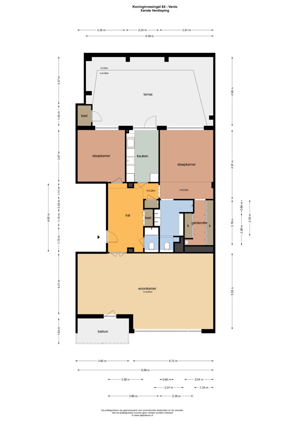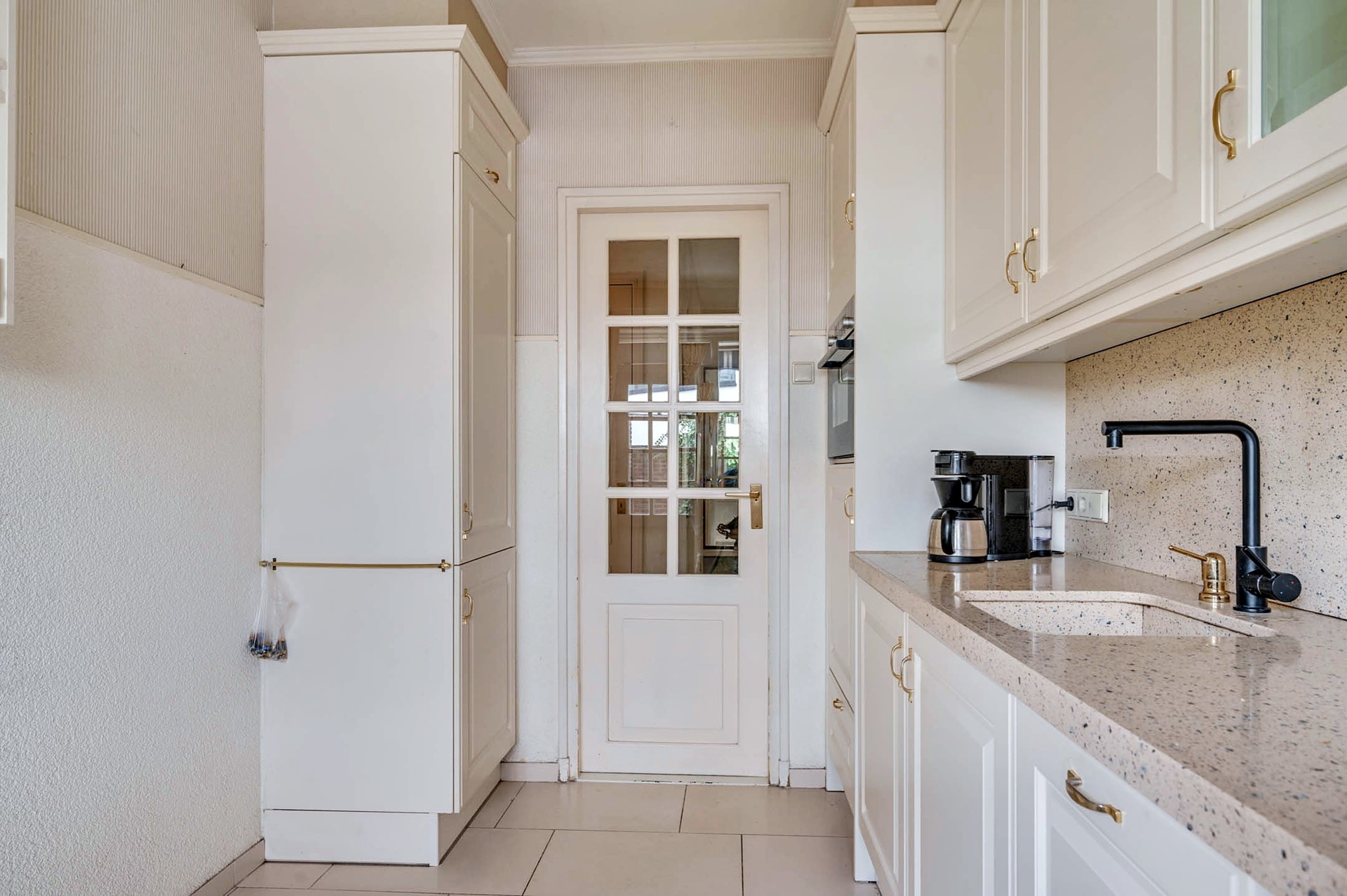 Verdieping - Entree/hal. - Netjes betegeld toilet met fonteintje. - Ruime woonkamer met vaste kastenwand en toegang tot balkon. - Keuken met nette inbouwcombinatie en voorzien van inbouwapparatuur: koelkast, diepvries, wasmachine, vaatwasmachine, keramische kookplaat, afzuigkap en combi magnetron. - Via keuken toegang tot zeer fraai en ruim dakterras (ca 45m²). - Slaapkamer 1 - Slaapkamer 2 voorzien van airco en toegang tot: - Garderobe met vaste kasten - Badkamer met dubbele wastafel, toilet en douche.