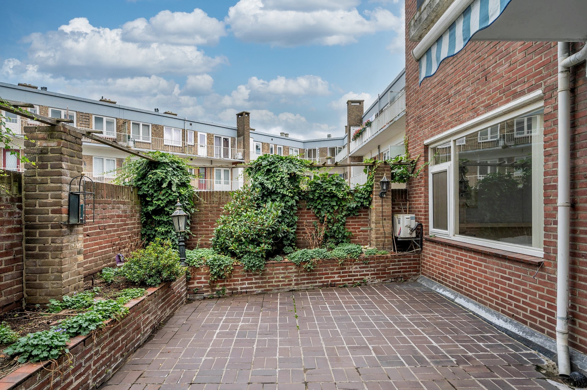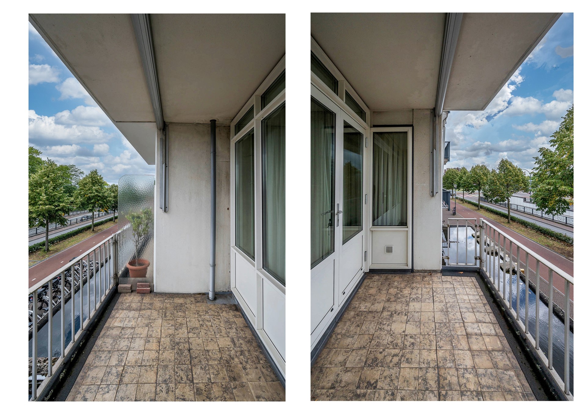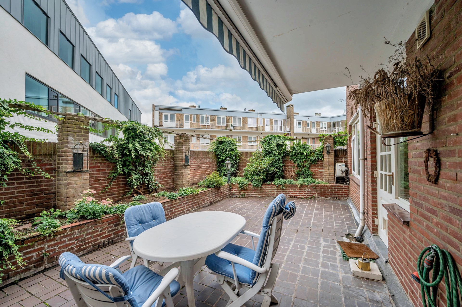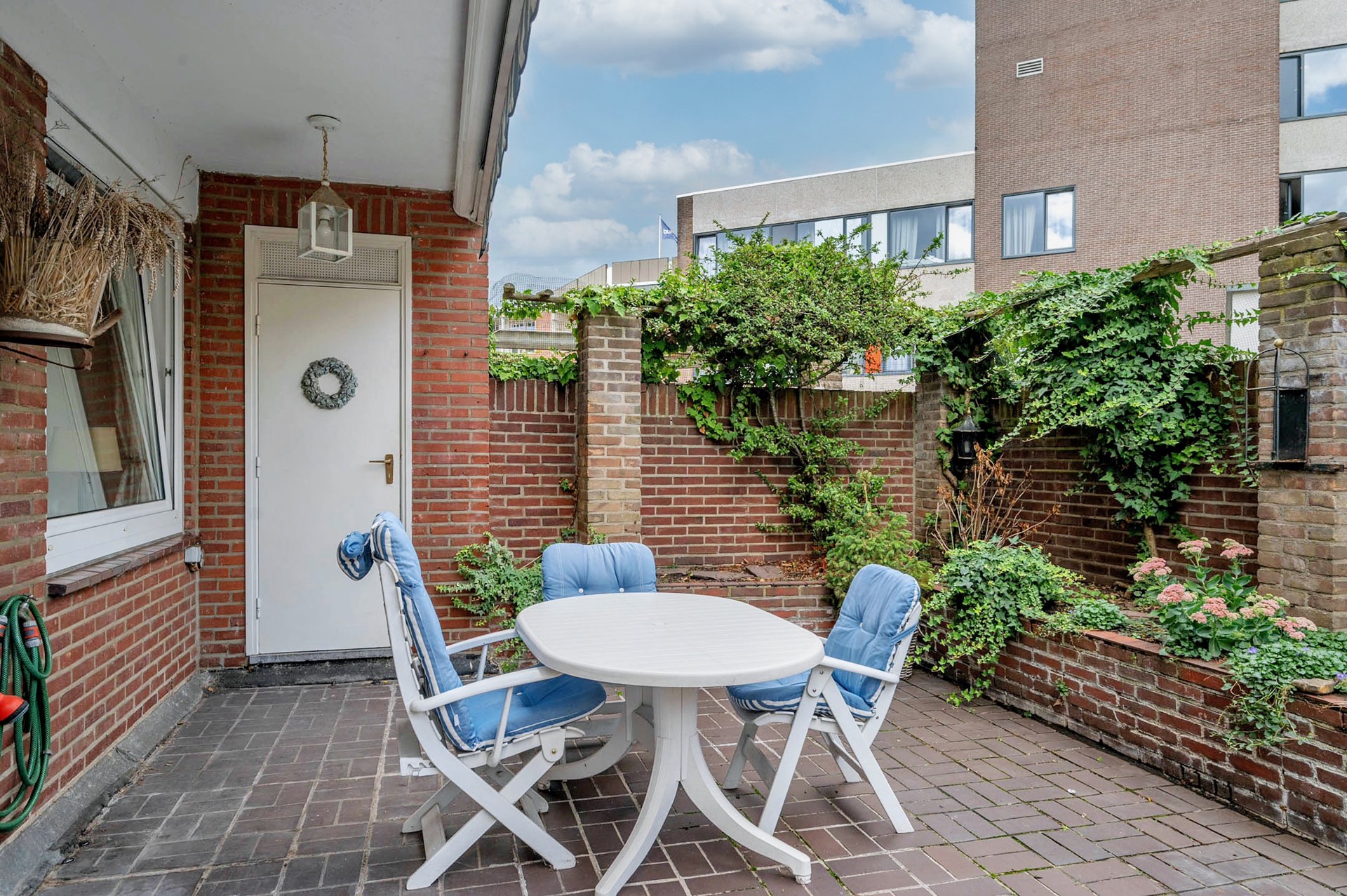 Balkon aan voorzijde (straatzijde; ca 5m²) en aan achterzijde gelegen zeer ruim dakterras (ca. 45m²) met kleine berging.