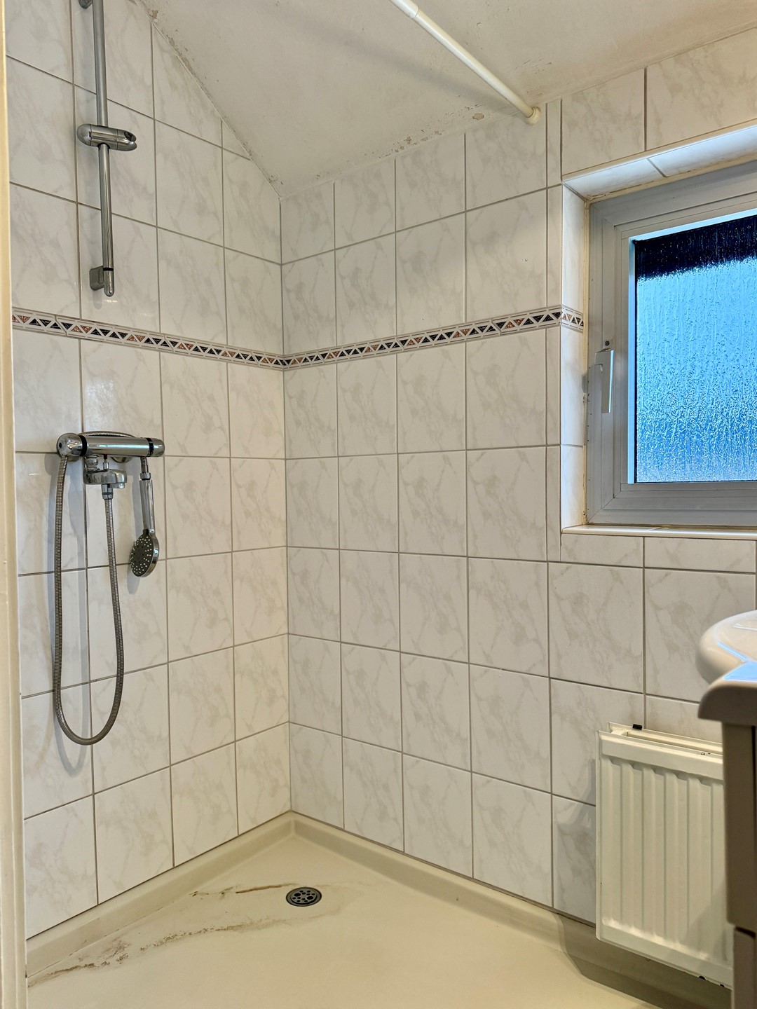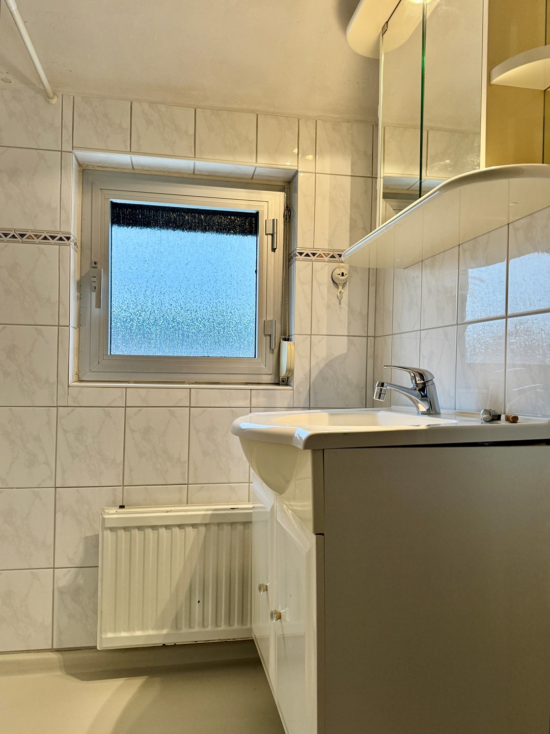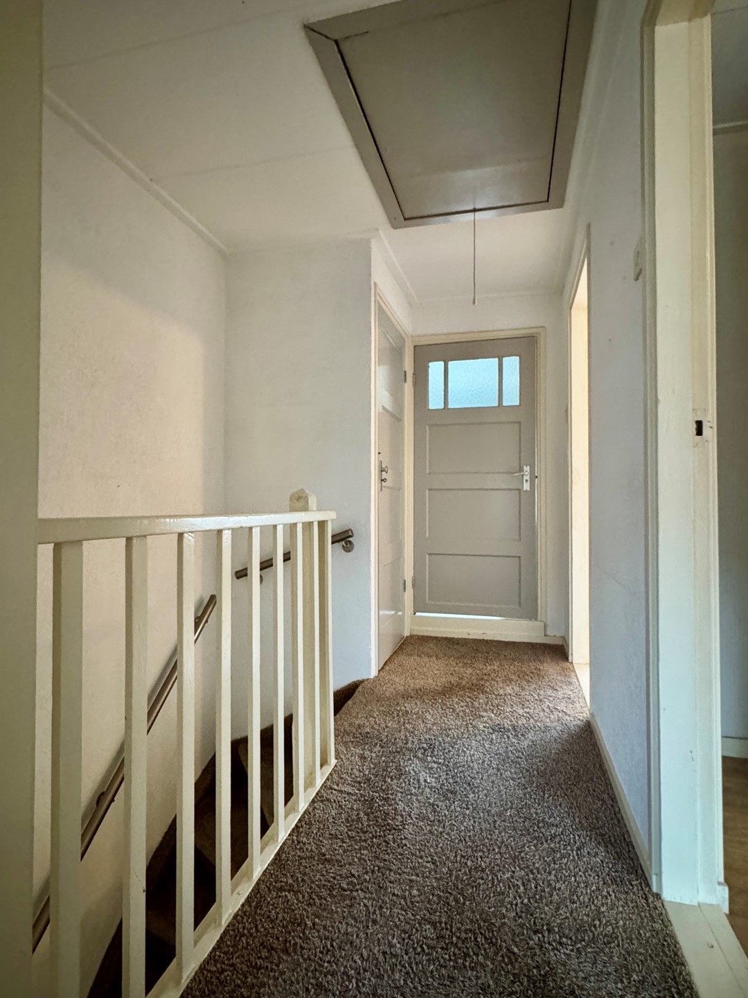 Op de eerste verdieping vind je drie slaapkamers. De hoofdslaapkamer biedt genoeg plek voor een royaal bed en kastruimte, terwijl de andere kamers perfect zijn als kinder-, werk- of logeerkamer. De badkamer is compact maar functioneel, met een douche en wastafelmeubel. Via een vlizotrap kom je boven op de zolder, waar je extra spullen netjes kwijt kunt.
