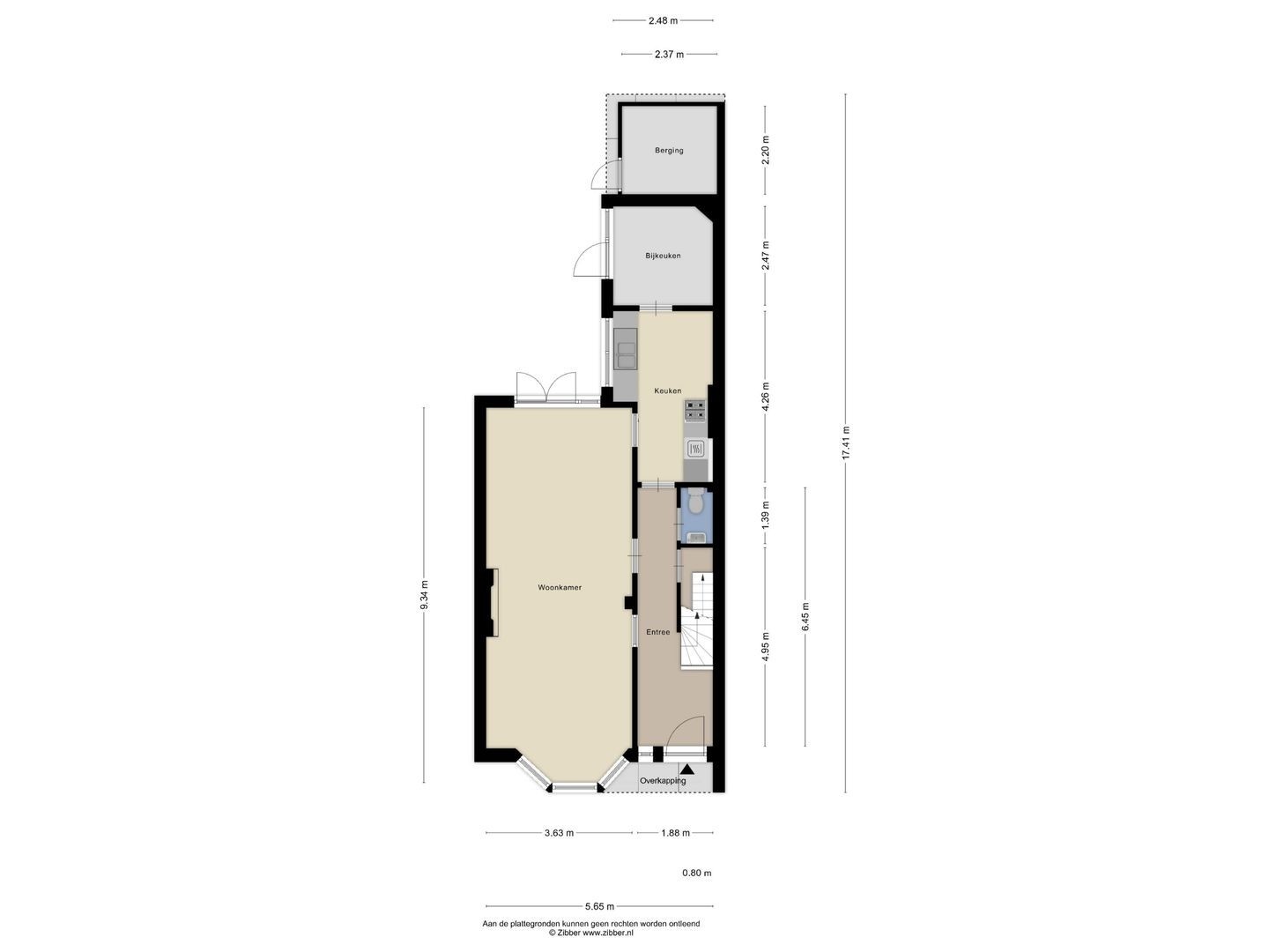 - Bijkeuken (2,37 x 2,20m) met inbouwkast.