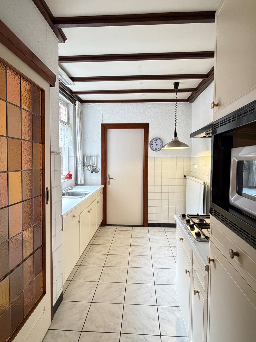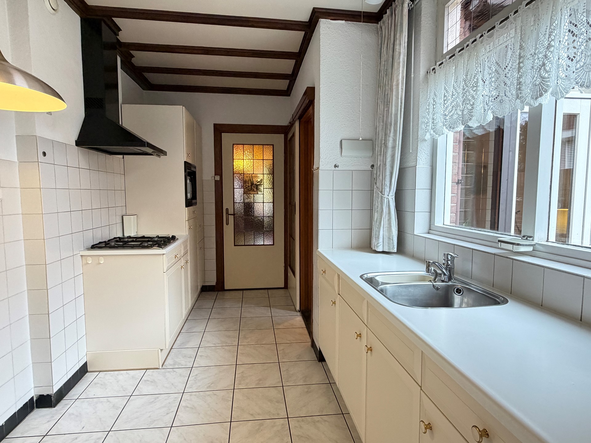 - Gesloten keuken met inbouwcombinatie met toegang tot de bijkeuken