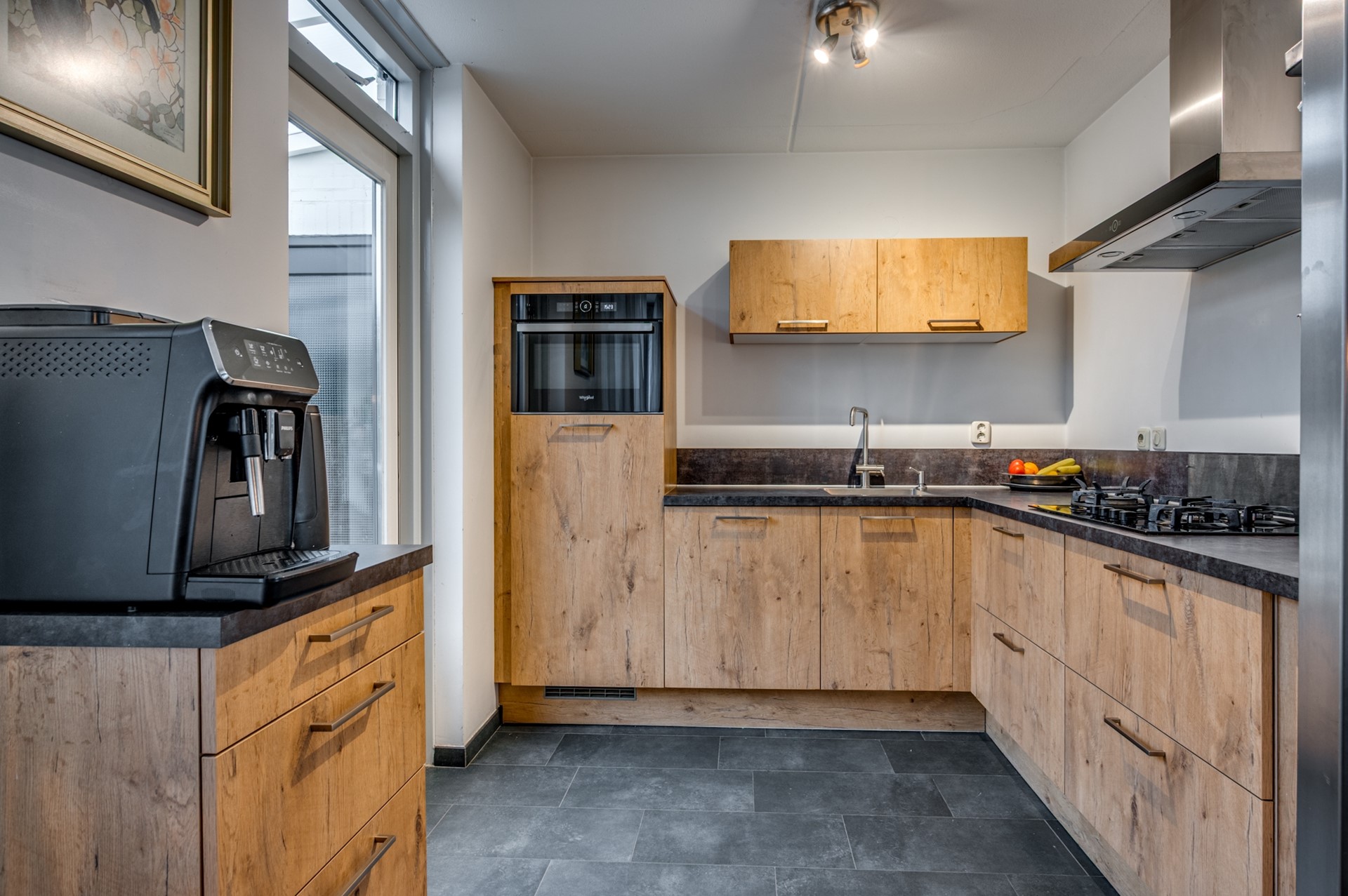 De begane grond beschikt over een ruime en lichte woonkamer met een fraaie erker aan de voorzijde. De halfopen keuken, modern ingericht in 2015 en voorzien van diverse inbouwapparatuur (deels vernieuwd in 2024), vormt een prettig geheel met de woonkamer. De begane grond is grotendeels afgewerkt met een fraaie eikenhouten vloer, wat bijdraagt aan de warme uitstraling.