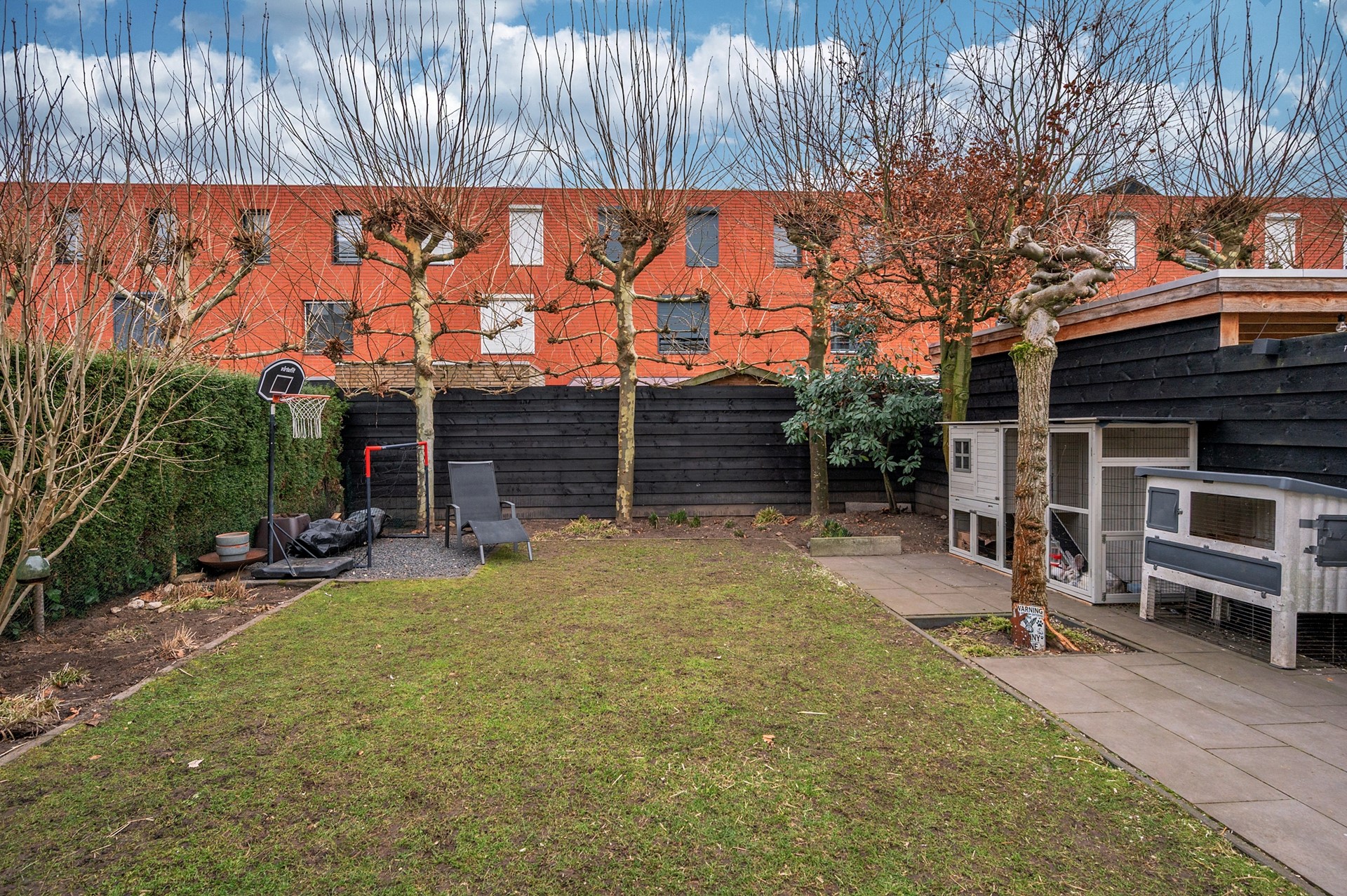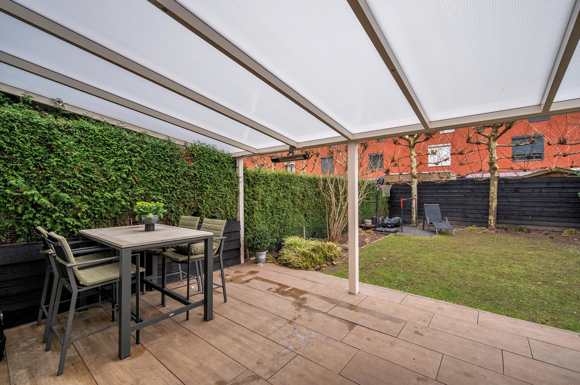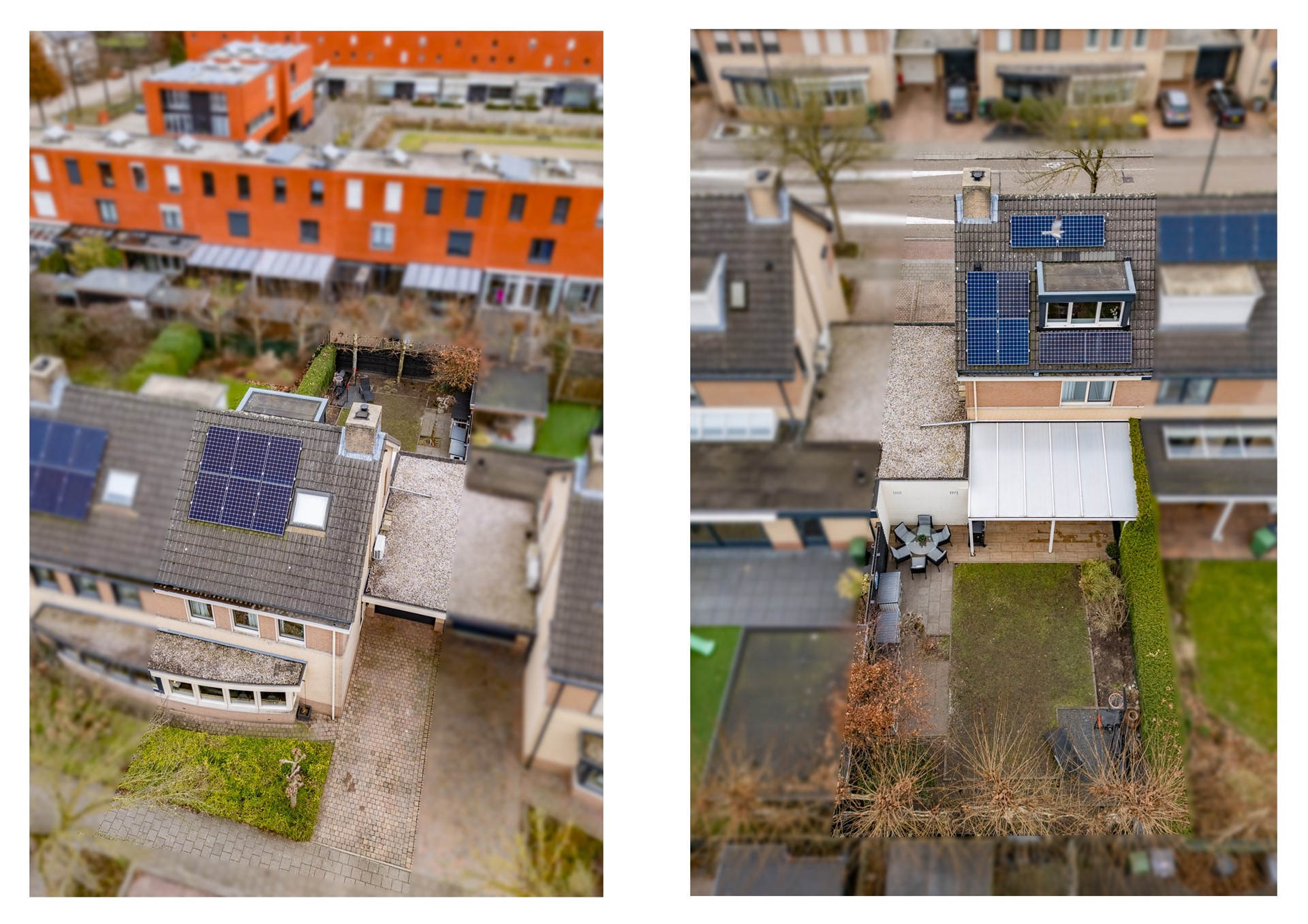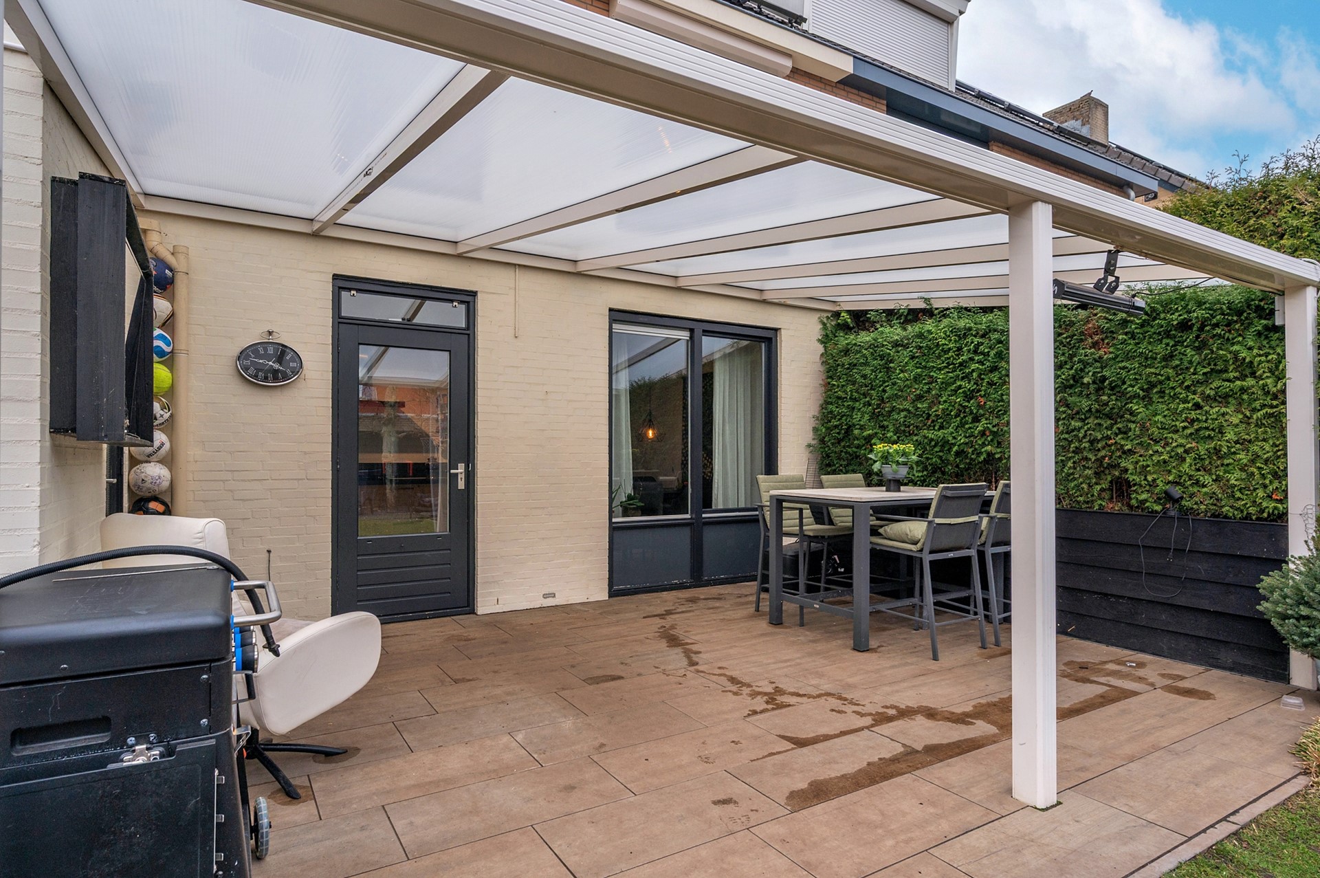 Buiten geniet je van een royale, verzorgde achtertuin op het zuidoosten, waar het dankzij de overkapping heerlijk vertoeven is. De aangebouwde garage beschikt over aansluitingen voor witgoed en een aparte loopdeur. Parkeren kan bovendien op eigen oprit.
